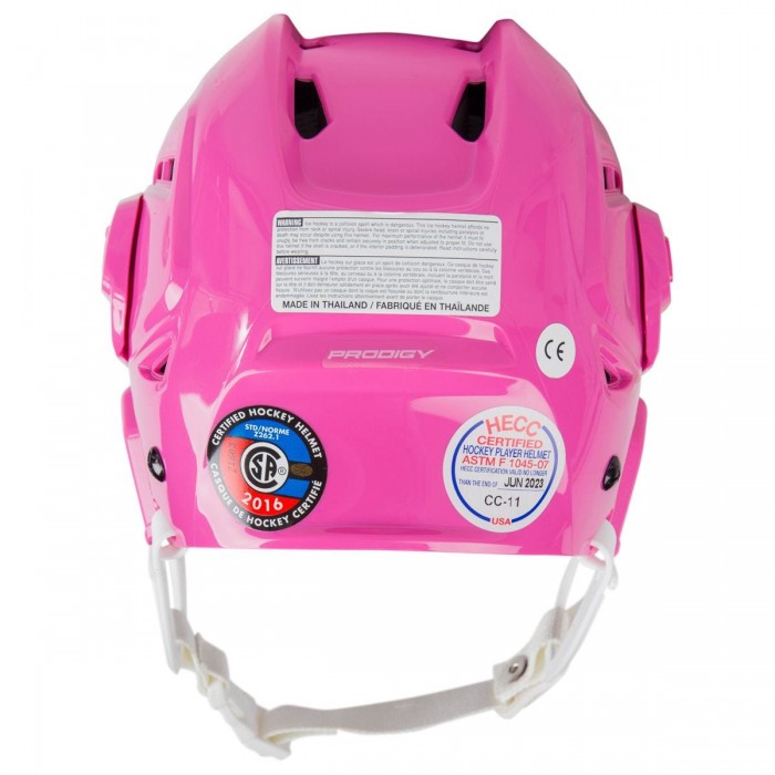 The Bauer Prodigy Youth Hockey Helmet is built with dual density foam, and a dual ridge crown. This helmet is also CSA, HECC, CE certified with a tool-free adjustment.