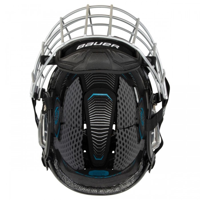 - Face Cage: A Bauer I facemask offers optimized geometry with carbon steel wire and a floating chin cup.