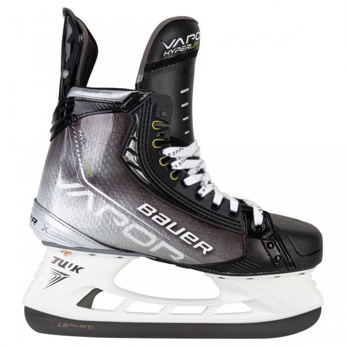 - Toe Cap/Box: Staying true to the asymmetrical concept seen within the Vapor line, the Vapor Hyperlite Hockey Skates take it a step further with the asymmetrical toe cap and box! With feedback using the profile of player scans, Bauer has optimized this new design to enhance your push-off power, helping increase top-end speed! Compared to its predecessor, this new toe cap and box is a touch shorter in height and longer in length.