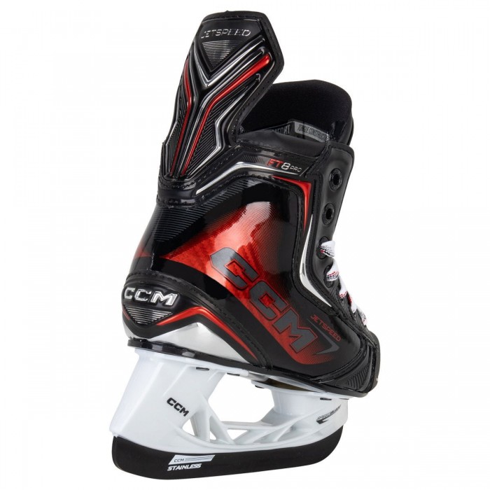 Cleared for takeoff! Be untouchable with the all-new CCM Jetspeed FT8 Pro Youth Ice Hockey Skates! Built and fine-tuned to achieve the quickness and agility players demand, the Jetspeed is the new standard for on-ice performance!