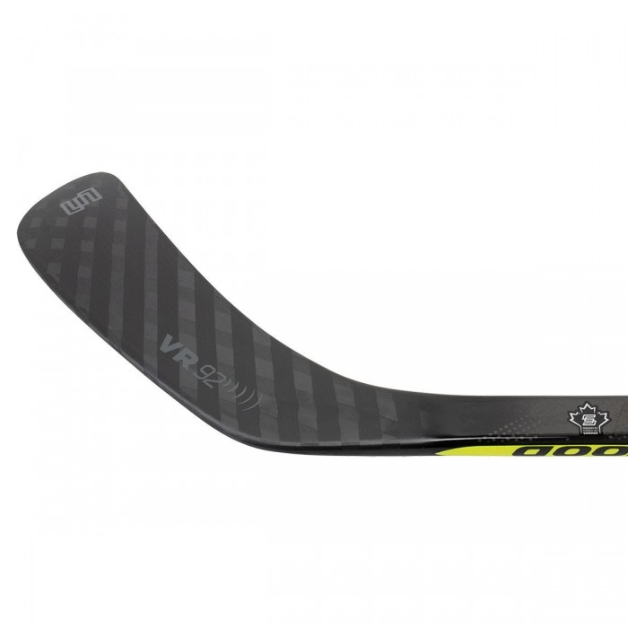 Features an integrated blade with VR92 dampening zones at the heel and toe, which reduce vibrations and give better puck feel. Construction blends blade and shaft into a unified, responsive Fused Two-Piece design.