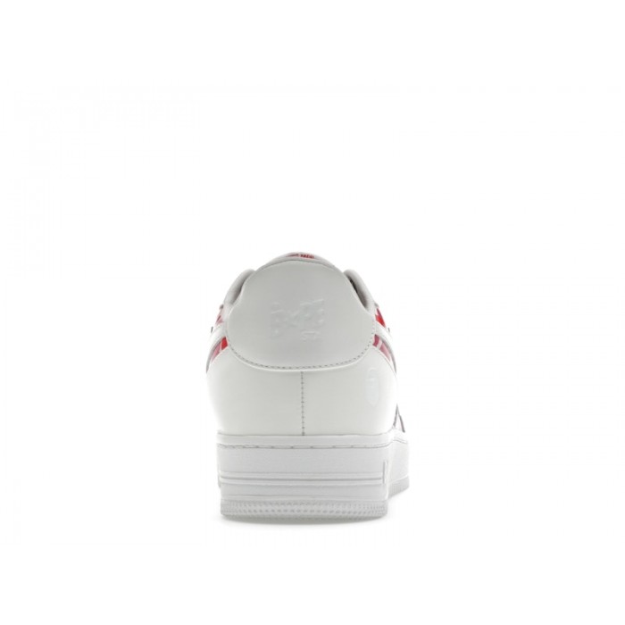 The A Bathing Ape Bape Sta Icon ABC Camo Pink is a stylish sneaker with bold colors and a modern design.This version of the A Bathing Ape Bape Sta has a white leather upper as its base. This material makes up the perforated toe box, and a white leather overlay forms the toe cap to support it. White leather also forms the eyestays, heel counter, and heel collar. The base of the side panels, however, appears in a camo pattern made of bold shades of pink and red. The laces also match these side panels. The A Bathing Ape Sta logo crosses each side as a white leather overlay, and a logo patch is seen on the tongue. The thick midsole contains branding as well.
