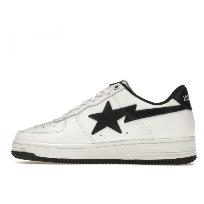 The A Bathing Ape Bape Sta JJJJound White Navy is a harmonious fusion of urban streetwear and timeless design.Crafted with precision and attention to detail, the A Bathing Ape Bape StaJJJJound in White Navy sneakers boast a premium build. The use of high-quality materials ensures durability, while the white and navy color scheme adds a touch of sophistication to the overall look. The signature star logo on the side further emphasizes the brand's identity. The combination of white and navy makes these sneakers easy to pair with a wide range of outfits, from casual streetwear to more elevated ensembles.
