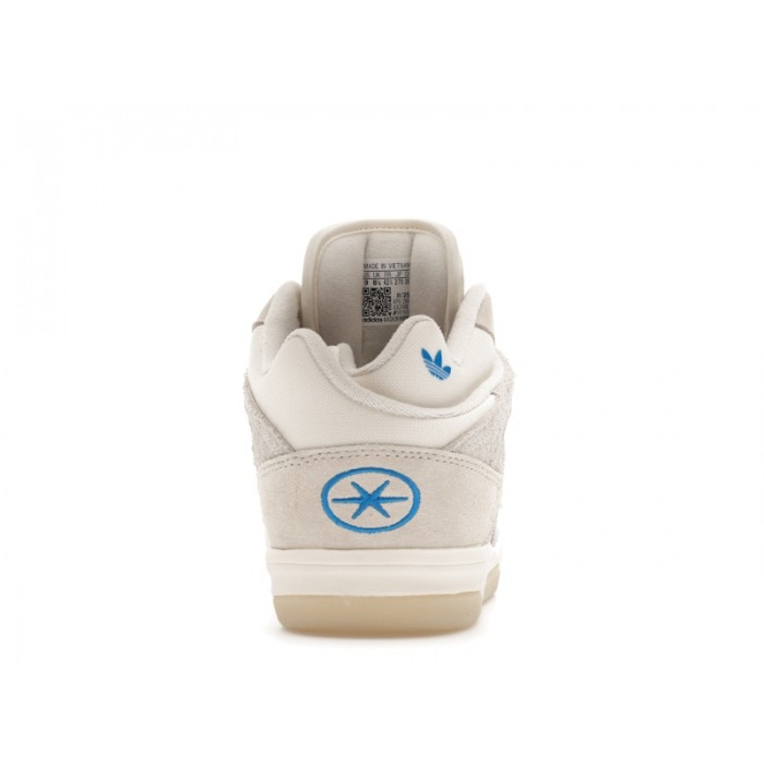 Цветовое решение Chalk White / Talc / Core White представляет собой нейтральную палитру кремовых, белых и серых оттенков, что делает пару универсальной для различных гардеробов. Дизайн дополнен синими деталями на язычке и пятке, а также фирменным логотипом звезды BadBo, символизирующим связь с океаном. Мягкая текстильная внутренняя отделка и продуманная стелька завершают образ, делая эти кроссовки ярким примером слияния уличной моды и авторского видения Bad Bunny.