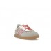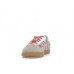This model of the adidas Samba OG has a fabric upper that contains floral embroidery in shades of blue, green, red, and pink. This design forms the entire base of the shoe, while a beige suede overlay forms the toe cap. The adidas three stripes also appear on the sides in a light pink color to match the flowers. The heel collar also contains this pink color, as do the laces. A white strip of leather forms the eyestays, and the outsole is gum rubber.