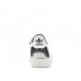 The adidas Superstar Prada Silver is a limited edition collaboration between two iconic brands, Adidas and Prada. The shoe features a silver leather upper with black accents on the stripes and heel tab. The classic shell toe and rubber sole are also in black. The shoe is finished with Prada's logo on the tongue and Adidas' logo on the heel tab. The release date for this shoe was September 8th, 2020, and it retailed for $525. The materials used in the shoe are high-quality leather and rubber, ensuring durability and comfort. This shoe is a must-have for sneaker enthusiasts and fans of both Adidas and Prada.