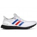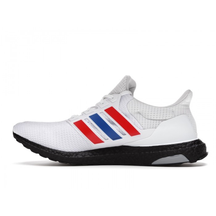 The adidas Ultra Boost USA (2020) is a low-top silhouette that utilizes iconic American colors of Cloud White, Royal Blue, and Scarlet Red.