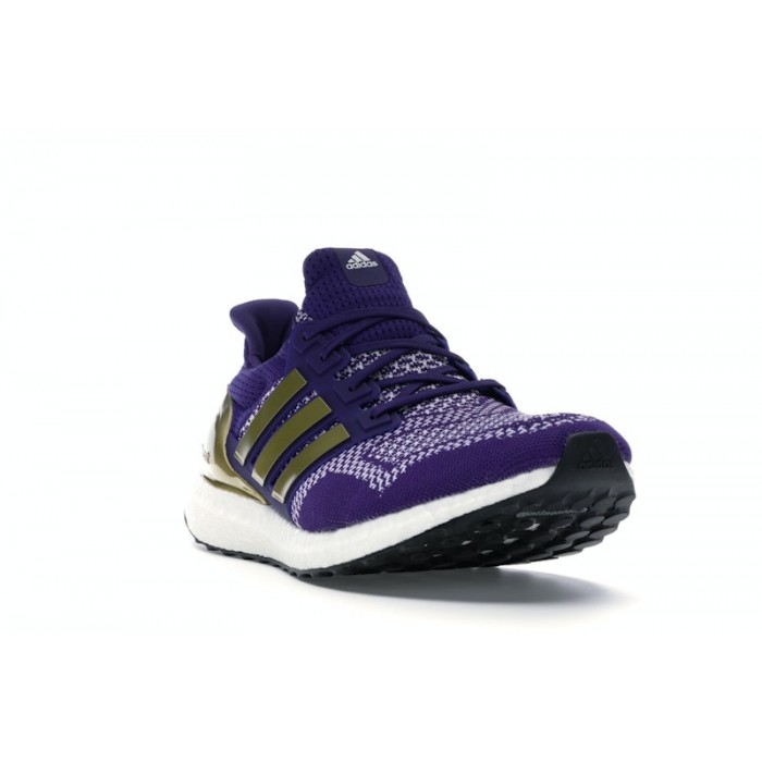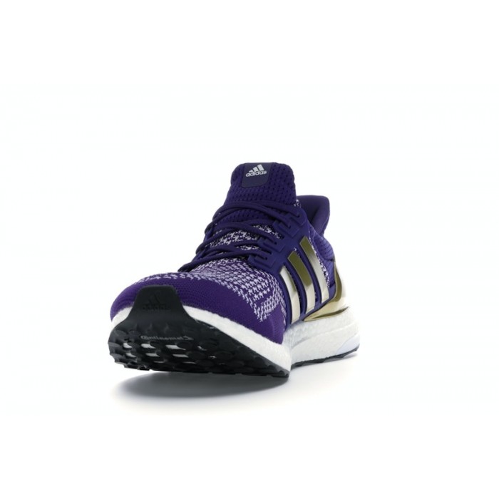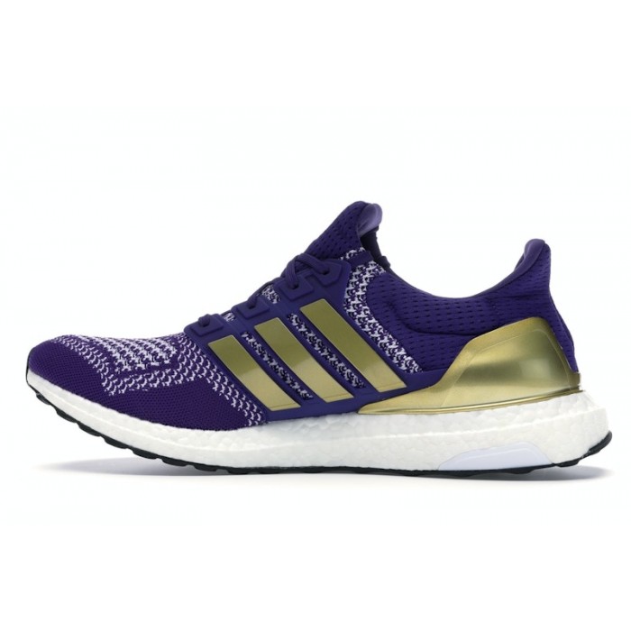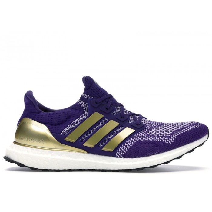 The Ultra Boost Washington Huskies comes in a purple, gold, and white colorway, and the upper is made from PrimeKnit. The PRIMEKNIT material wraps around the foot to offer a snug and supportive fit, allowing for a natural range of motion while running or training. Additionally, the upper also features a reinforced heel counter that helps stabilize the foot and prevent slipping. The outsole is made from a Continental Rubber compound, which offers great traction and durability.