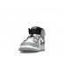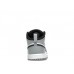 The Jordan 1 Mid for toddlers in a Light Smoke Gray/Anthracite/white colorway has the side panel and perforated toe box of the upper made of white leather and the collar of black leather. Gray leather overlays complement both colors and matches the outsole made of rubber. The black leather Swoosh features white contrast stitching that tie back to the white Wings logo on the collar overlay, the laces, and the textured foam midsole with Air cushioning. The insole is white with a gray Jumpman and the tongue tag is gray with a white Jumpman.