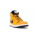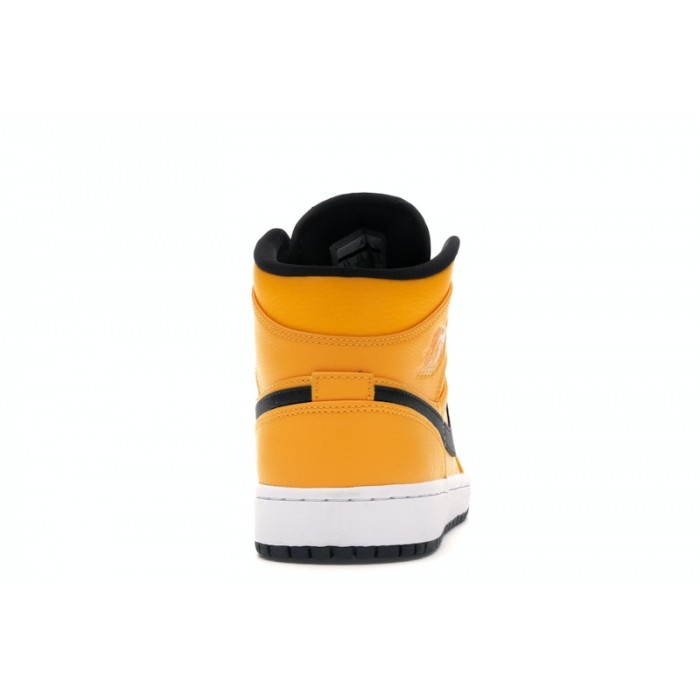 The Jordan 1 Mid University Gold Black is a mid-top iteration of the Air Jordan 1 sneaker in a ‘University Gold Black’ colorway.
