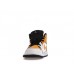 The Nike Air Jordan 1 became an instant classic upon its debut to the public in the mid 1980s. Since then, Nike has produced the iconic silhouette in myriad variations, such as the Jordan 1 mid. The mid-height and rear pull tab in University Gold assist with wearability without sacrificing signature Jordan style. The tongue, laces, and inner collar are black, accented by University Gold Nike Swooshes on the sides, the Jumpman logo on the tongue, and the Jordan Wings logo on the side. A white midsole and black outsole complete the look.