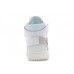 - Подошва: классическая резиновая аутсоль Air Jordan 1 с мидсолью в белой гамме и фирменным текстом "AIR".