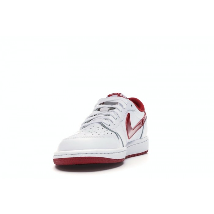 The Air Jordan 1 Retro Low White Varsity Red is a low-top version of the iconic Jordan 1 silhouette, featuring a white color scheme with Varsity Red accents.