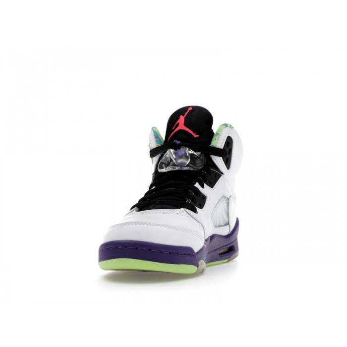 The midsole of this Retro Alternate Air Jordan 5 for grade schoolers is multi-colored. The shoe also displays a translucent outsole that is frosty in nature, as well as mismatched Jumpman emblems that come in a combination of green and pink hues on the tongues.