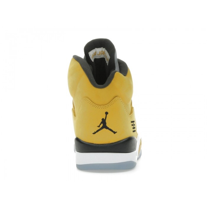 Цветовая палитра Tokyo T23 мгновенно привлекает внимание благодаря насыщенному желтому цвету, который гармонично дополняется акцентами Wolf Grey на язычке, боковой сетке и люверсах. Черные детали на шнурках, пятке и элементах подошвы "shark tooth" создают выразительный и сбалансированный образ. Эта уникальная комбинация ярких и нейтральных оттенков делает Jordan 5 Retro Tokyo T23 (2025) не просто кроссовками, а значимым элементом гардероба, отражающим богатую историю Jordan Brand и его связь с мировой культурой.