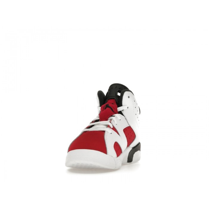 The Air Jordan 6 Retro Carmine (2021) (PS) draws inspiration from the Jordan 6 Carmine colorway that first released in 1991.This particular Air Jordan 6 Retro comes in preschool sizing and features a white and red color scheme with contrasting black highlights on the tongue, mid sole and above the heel. In terms of details, it has a perforated design on the side panel and has Nike Air branding on the heel area as well as the Jumpman logo on the tongue.