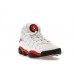 The Jordan 6 high top blends design aspects from seven signature Air Jordan models that Michael Jordan wore during six NBA Championship games between 1991-1998. The predominantly white mesh upper houses a thick white tongue with "Two3" written in black, representing Jordan’s jersey number of 23. White round laces can be tightened further with a lace lock sporting the Jumpman icon. Red and black hits are on the heel counter, heel loop, and underfoot on the midsole, which houses a Zoom Air unit in the heel and another in the forefoot.
