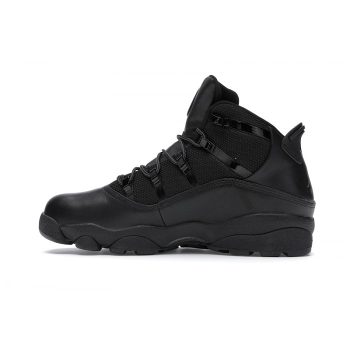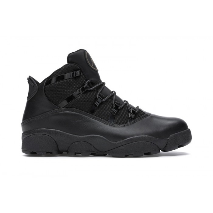 The Jordan 6 Rings Winterized Black (2019) is a sturdy, all-weather shoe that pays homage to Michael Jordan's six NBA championships and fuses elements from seven different Air Jordan silhouettes that he wore in those games.