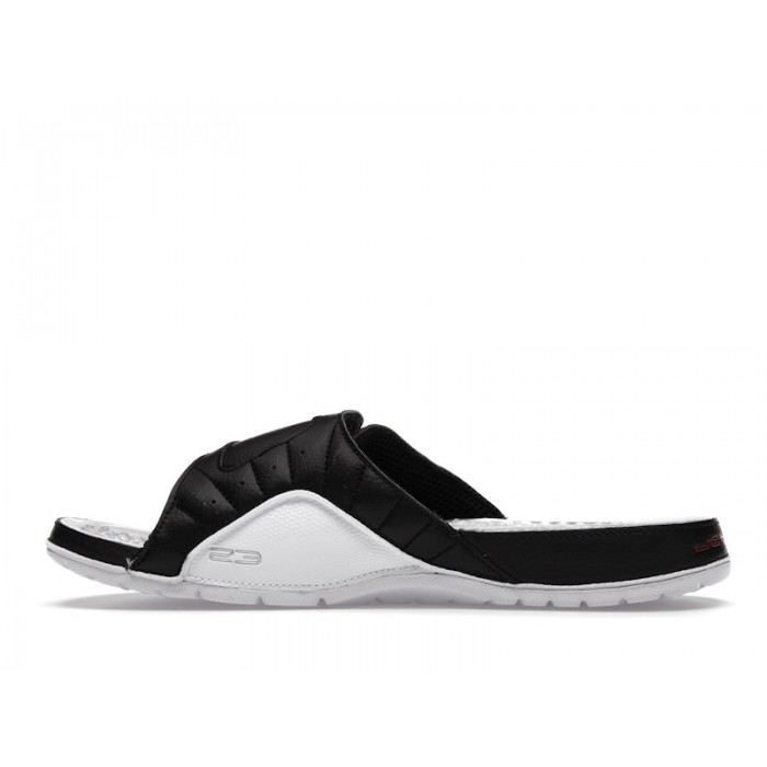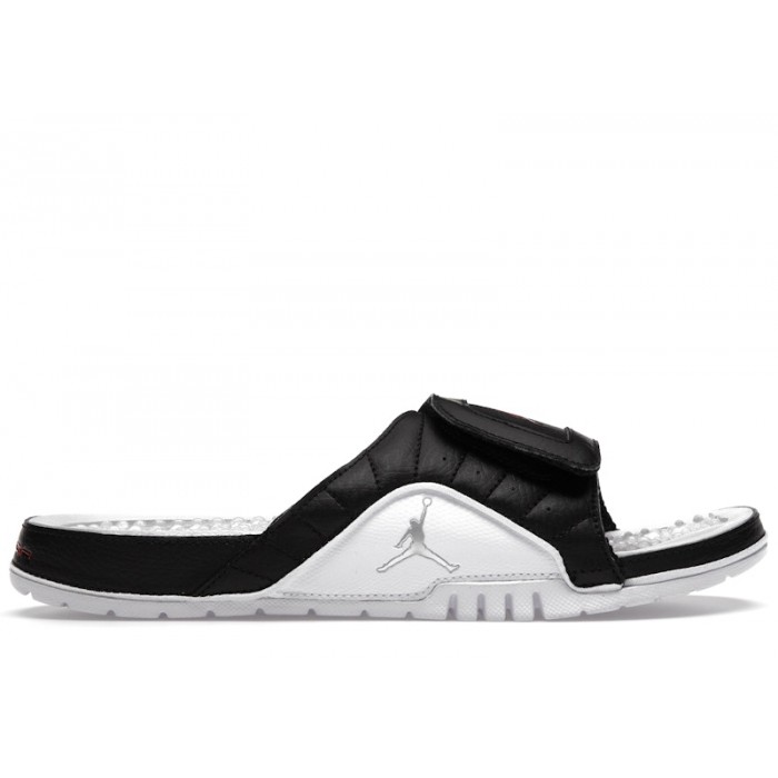 It isn’t difficult to see which aspects of the AJ12 these slides borrow from. The straps on these slides come directly from the upper part of the AJ12 sneaker. They also feature bright-red Air Jordan logos on the straps as well as Air Jordan logos on the outsides of the slides, the number "23" on the inside, and the word "JORDAN" on the back.