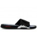 The Jordan Hydro 5 Slide Black Metallic presents the silhouette in a sleek black colorway with Metallic Silver and Fire Red accents.