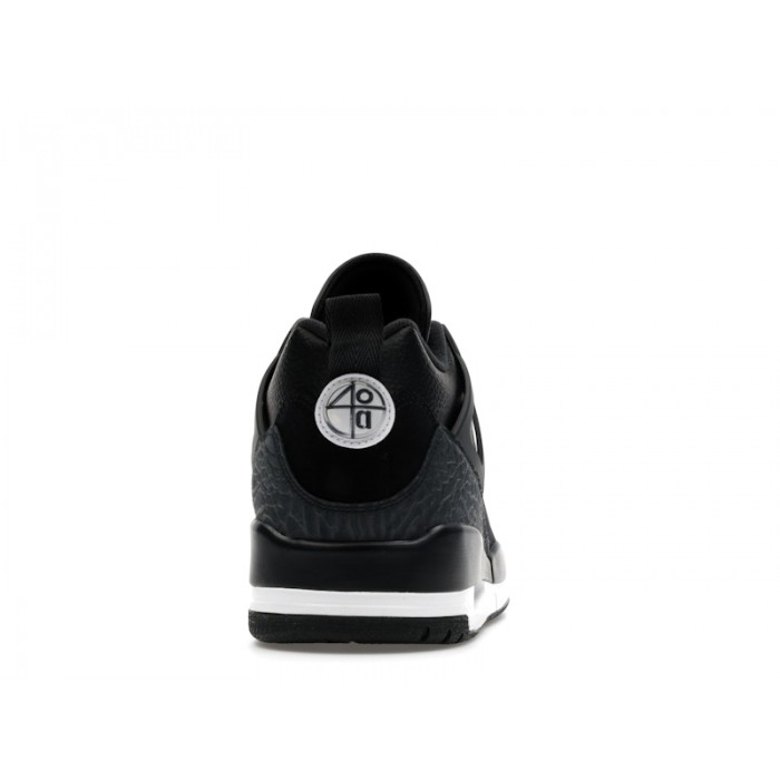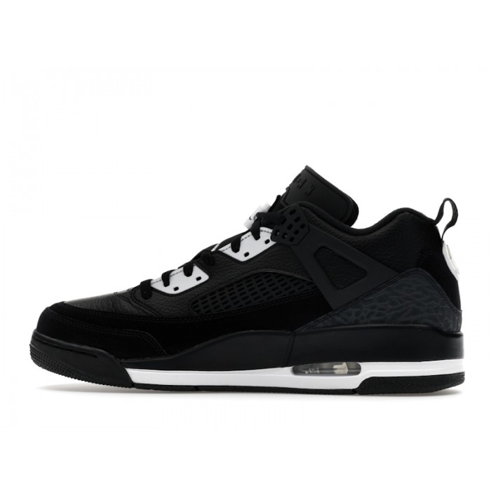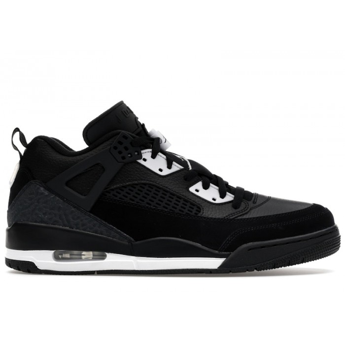 Jordan Spizike Low "Oreo" (SKU: FQ1759-010) — низкопрофильные гибридные кроссовки Jordan Brand, сочетающие элементы Air Jordan III, IV, V и VI в черно-белом колорвее Black/White-Anthracite. Модель выполнена из премиальной черной кожи с элефантовым принтом и оснащена видимой подушкой Nike Air в пятке для комфортной амортизации.