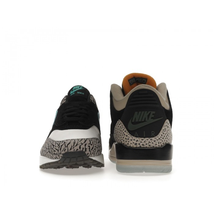 The Jordan 3 Retro & Nike Air Max 1 Atmos Pack is a limited-edition sneaker collaboration between Jordan and Nike. The pack includes two silhouettes, the Jordan 3 Retro and the Nike Air Max 1, both featuring the Atmos elephant print.