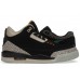 The Air Jordan 3 Retro features a black tumbled leather upper. The Jumpman logo is embroidered on the tongue of the left shoe, while the Nike Air branding can be seen on the heel. The right shoe includes Nike Swooshes on both sides and Nike Air branding on the tongue and heel.