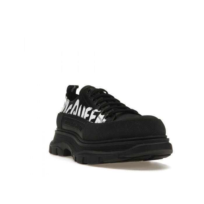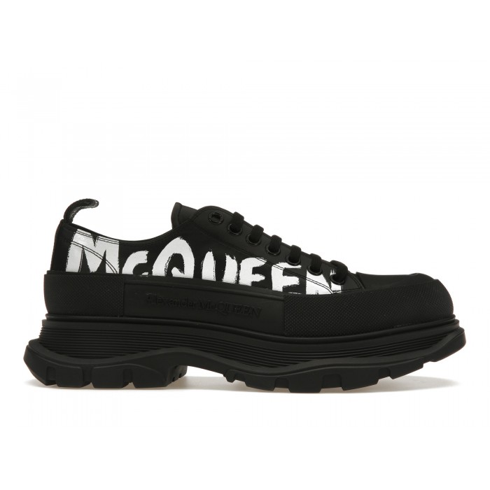 Гарантия нашей работы Alexander McQueen Tread Slick Low Lace Up Graffiti Black Black White