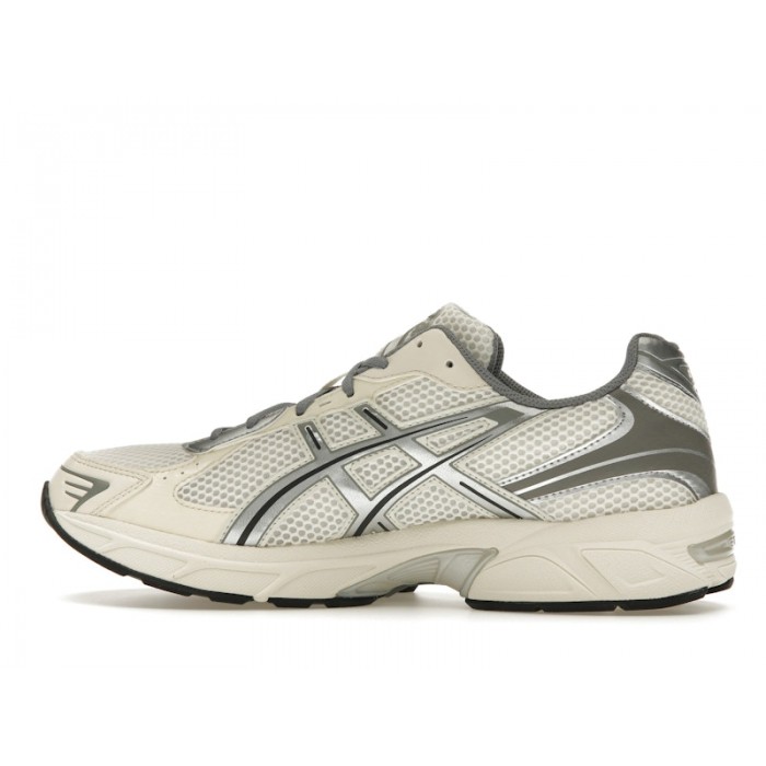 The Cream Clay Grey Gel-1130 by ASICS women's shoe features a breathable mesh upper with overlays in synthetic leather for durability. The color palette includes creamy off-white tones with grey accents for a clean, minimalist finish. ASICS branding appears on the side panels and tongue to add a subtle contrast. The Gel-1130 was first introduced in 2008 and draws inspiration from the Gel-1000 series and highlights ASICS' rich history with performance footwear.