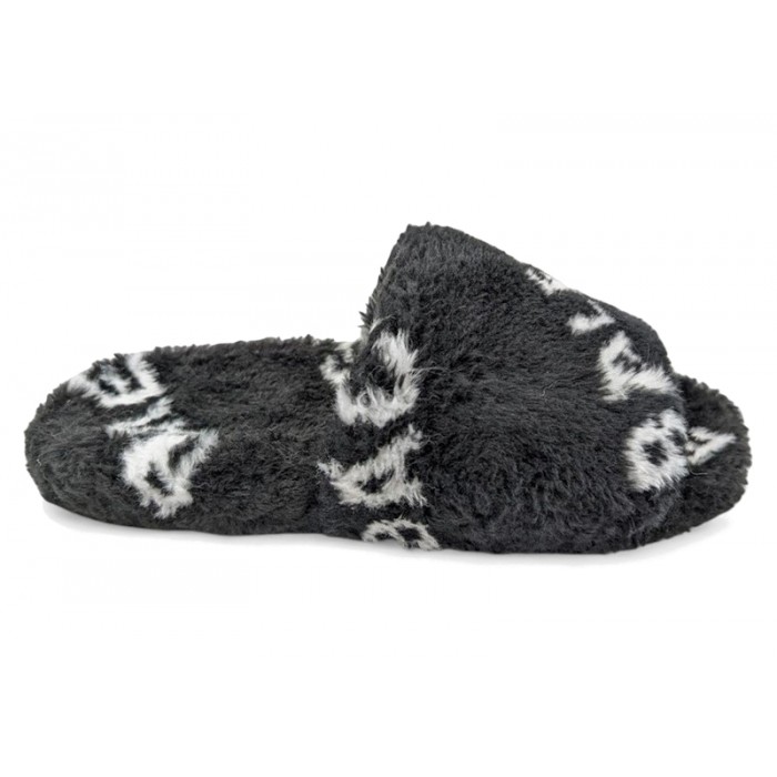 Описание Balenciaga Furry Slide Fake Fur Logo Allover Black White