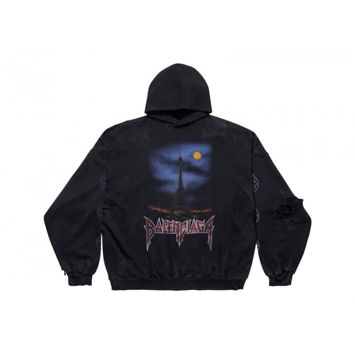 Гарантия нашей работы Balenciaga Paris Moon No Pocket Hoodie Oversized Faded Black