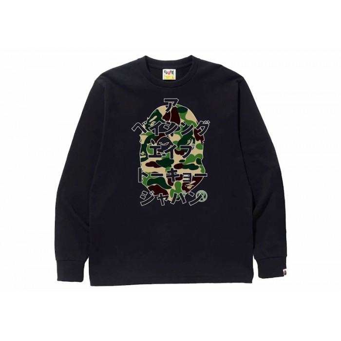 Описание BAPE ABC Camo Japanese Letters L/S Tee Black/Green