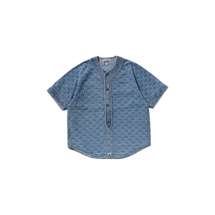 Описание BAPE College Monogram Baseball S/S Denim Shirt Light Indigo