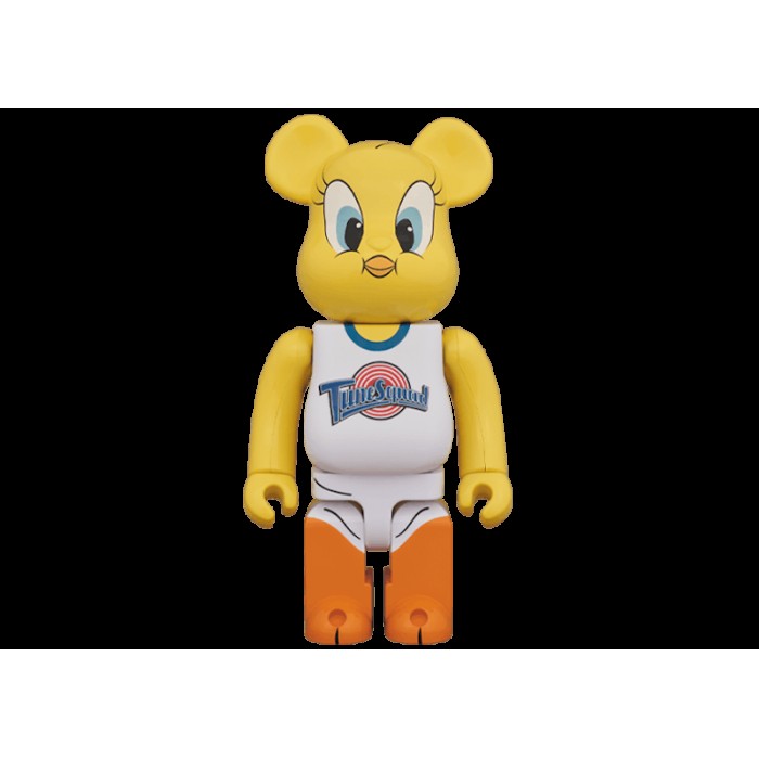 Bearbrick teamed up with Space Jam to create the Bearbrick x Space Jam TWEETY 400% Yellow figurines. In typical Bearbrick style, the figure features Tweety bird in a Tune Squad basketball uniform on a classic Bearbrick bear silhouette.The Bearbrick x Space Jam TWEETY 400% Yellow retailed for a price of $92.