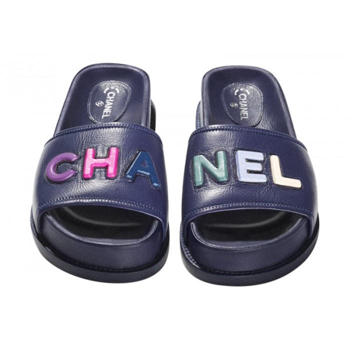 Гарантия нашей работы Chanel Logo Mule Sandal Navy Leather