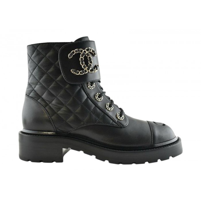 Гарантия нашей работы Chanel Quilted Combat Boot Black Leather
