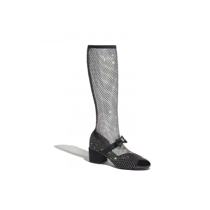 Основные характеристики Chanel Resille 55mm Knee High Mary Janes Black Crystal Patent Calfskin