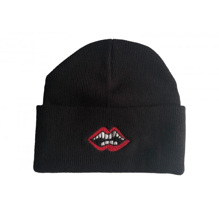 The Chrome Hearts Matty Boy Chomper Beanie Black is a premium beanie created by Chrome Hearts, a California-based streetwear label known for its edgy biker origins and rock & roll aesthetic.The Black Chrome Hearts Matty Boy Chomper Beanie is crafted from high-quality acrylic yarn and boasts tight-knit, even stitches. The base comes in black, allowing the iconic Chrome Hearts logos to stand out. As such, the cuff displays red-painted lips outlined in black with white teeth embroidered on the front. The part of the cuff visible from the back showcases "CHROME HEARTS" in Gothic-inspired, white lettering. In addition, two white crosses adorn either side of the Chrome Hearts branding, a nod to the label's biker roots.