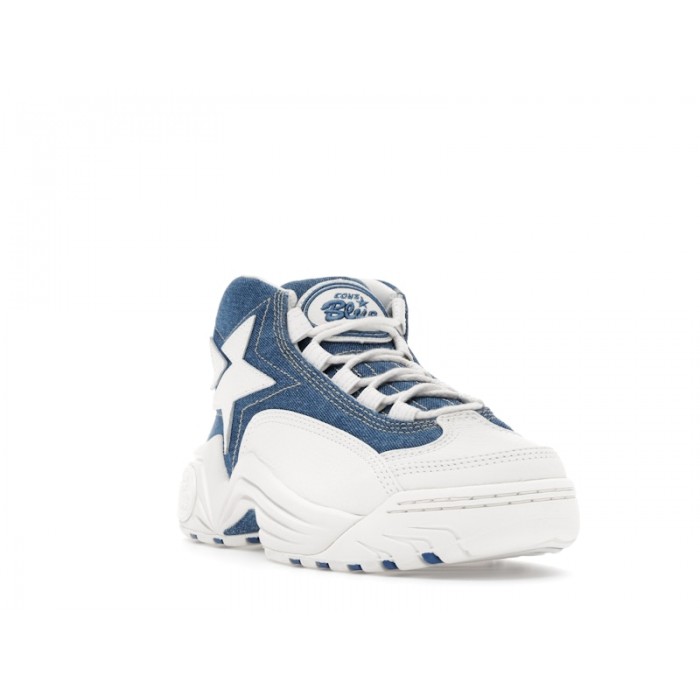 - Дополнительно: крупный стрелovidный логотип star из кожи по бокам и контрастные деним‑акценты на язычке и в районе арки стопы.