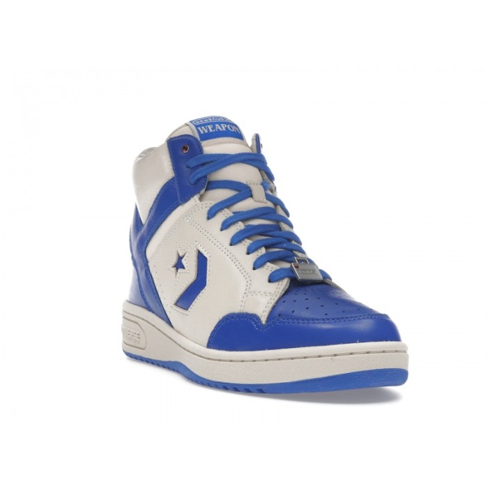 SKU: A17934C. Эта лимитированная модель кед Converse Weapon Hi создана в коллаборации с сериалом Stranger Things. Верх выполнен из премиальной кожи, а дизайн акцентирован на цветовой гамме Natural Ivory, Laser Blue и Egret.
