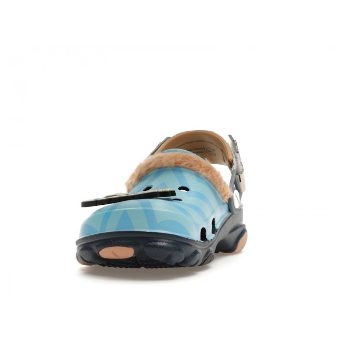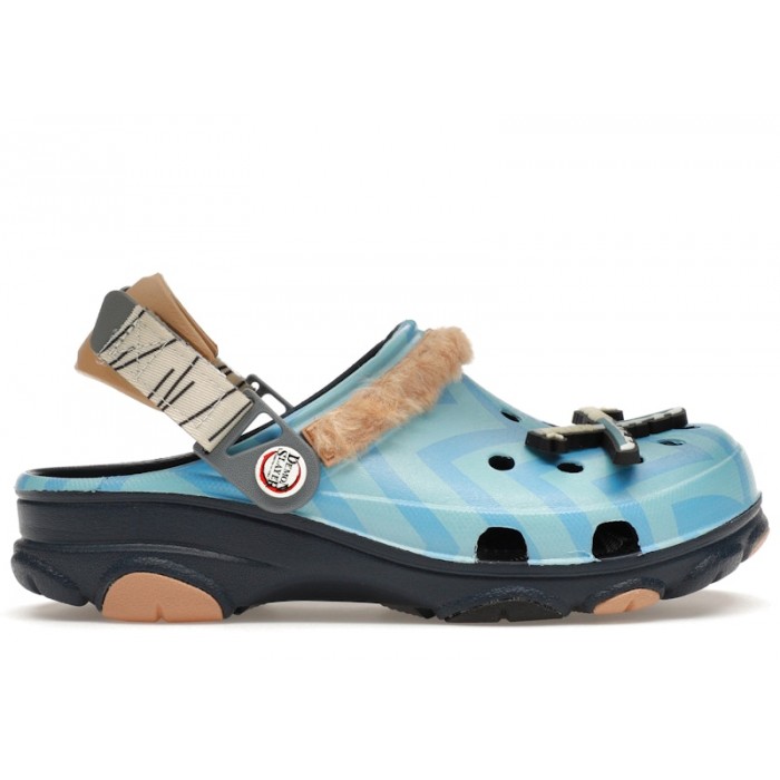 Crocs launched an entire footwear collection that used the anime series Demon Slayer for inspiration. The Crocs Classic All-Terrain Clog Demon Slayer Inosuke is one of the clogs to come out of this collaborative effort.This Crocs clog, which is inspired by the character Inosuke Hashibira, has a bright blue upper with a pattern all over it and a tan fur trim that rests on top of the clog's vamp. It also has a bunch of Demon Slayer branding on it, as well as a pivoting heel strap that is designed to provide a more comfortable and secure fit. Crocs finishes it off with a lugged outsole that delivers plenty of traction.
