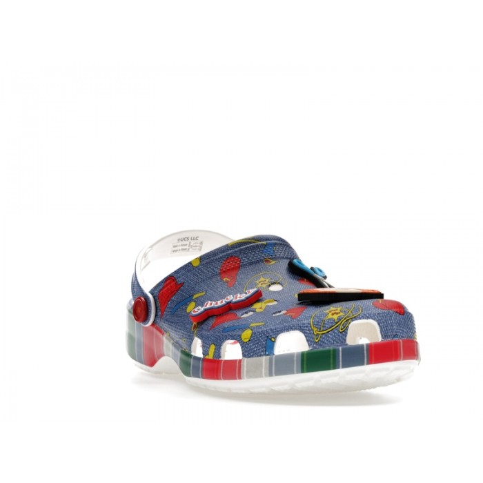 SKU 210510-90H. Crocs Classic Clog Childs Play Chucky — это уникальная коллаборационная модель из фирменного материала Croslite™, вдохновленная эстетикой персонажа Чаки из франшизы Child's Play и выполненная в расцветке Blue/Multi.