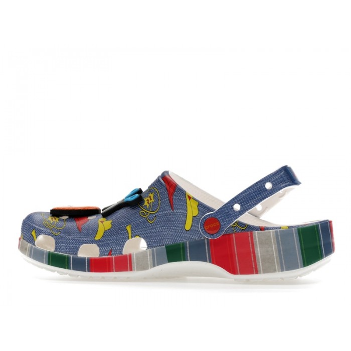 Модель Crocs Classic Clog Childs Play Chucky сочетает в себе культовый силуэт Crocs Classic Clog и уникальный дизайн, вдохновленный персонажем Чаки из фильмов Child's Play. Верх обуви украшен детализированной графикой, имитирующей знаменитый комбинезон и полосатый свитер куклы, включая элементы, напоминающие джинсовую ткань. Регулируемый задник обеспечивает комфортную и надежную фиксацию на ноге, делая эти сабо подходящими для разнообразных сценариев использования: от расслабленных прогулок до активного отдыха у воды. Эта модель также является коллекционным предметом для поклонников франшизы.