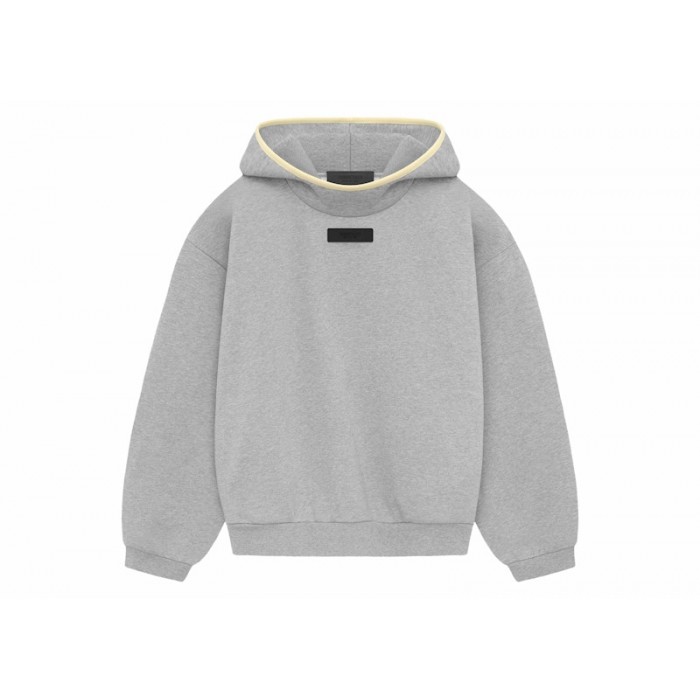 Feel good while wearing the Fear of God Essentials Hoodie Light Heather Grey/Garden Yellow from the spring/summer 2024 season of Jerry Lorenzo’s designer lifestyle apparel brand.This hooded sweatshirt boasts a neutral light heather grey colorway throughout the body, sleeves, and hood with a garden yellow accent seen around the outer edge of the hood itself. This adds just the right amount of color that is not overpowering. Other details include a tapered waistband, rib-knit cuffs on the sleeves, a mock neckline, and side seam pockets that seamlessly blend into the design. The side seam pockets compliment the overall round, cropped aesthetic. Holding true to minimalist branding, there is a sole rubberized logo on the front center of the hoodie.
