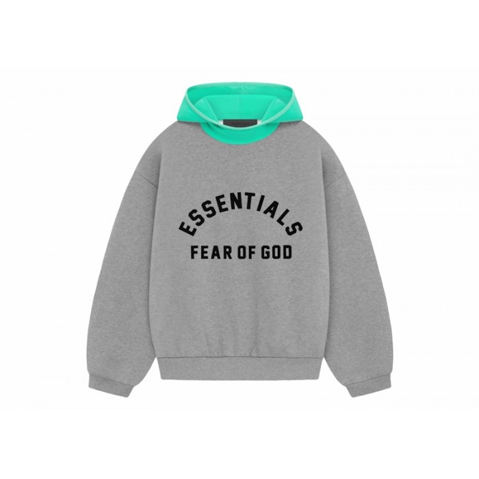 Описание Fear of God Essentials Nylon Fleece Hoodie Dark Heather Oatmeal/Mint Leaf