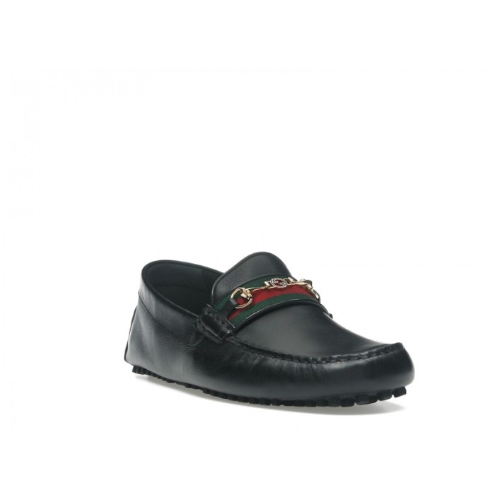 Основные характеристики Gucci Ayrton Webbing-Trimmed Horsebit Leather Driver Loafers Black