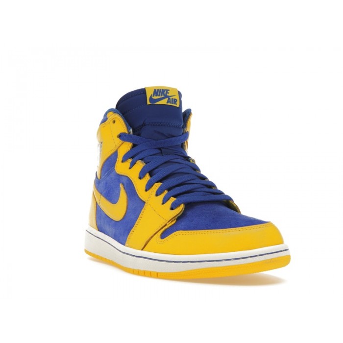The Air Jordan 1 Retro Laney 2013 is a classic sneaker that pays homage to Michael Jordan's high school alma mater. The shoe features a mix of premium leather and suede in a combination of blue, yellow, and white colors. The Laney High School logo is embroidered on the heel, while the iconic Nike Swoosh is prominently displayed on the side. The shoe also features a padded collar and tongue for added comfort and support. Originally released on November 16, 2013, the Air Jordan 1 Retro Laney 2013 retailed for $140. This sneaker is a must-have for any Jordan fan or collector, and its timeless design ensures it will remain a staple in the sneaker community for years to come.