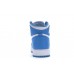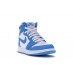 The Jordan 1 Retro UNC (GS) comes in a white and dark powder blue color scheme.