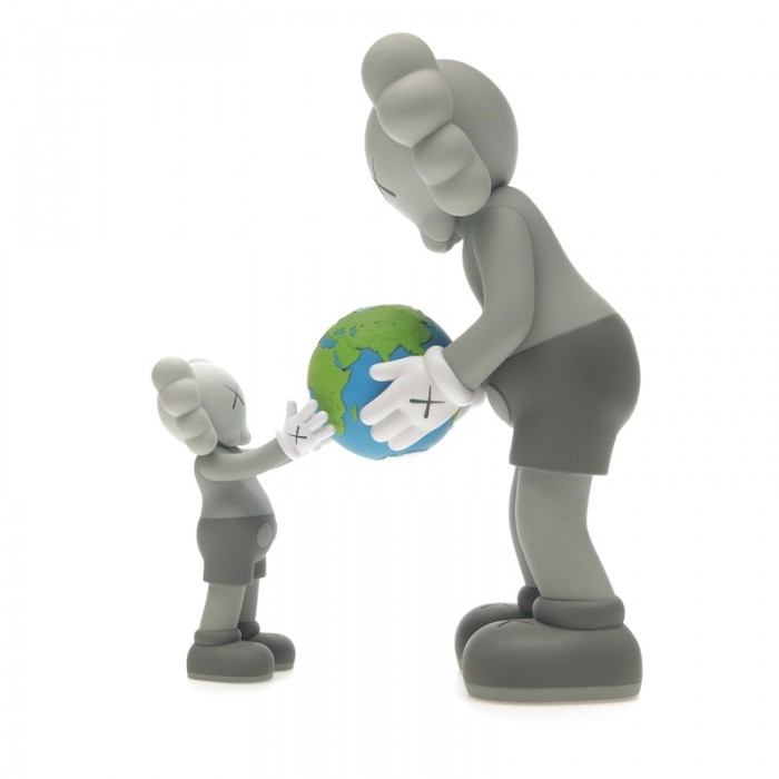 KAWS is bringing the world together with the release of his THE PROMISE Collection for the beginning of the 2022 World Cup in Qatar. The KAWS THE PROMISE Collection first released at the Qatar Museum Store days prior to a global release on KAWS’ website. The limited vinyl figures show two KAWS Companion characters holding a globe of earth in between them. The KAWS THE PROMISE Vinyl Figure measures 13.39" x 6.3" x 9.45".The KAWS THE PROMISE Vinyl Figure (Grey) released November 22, 2022 with a retail price of $480.