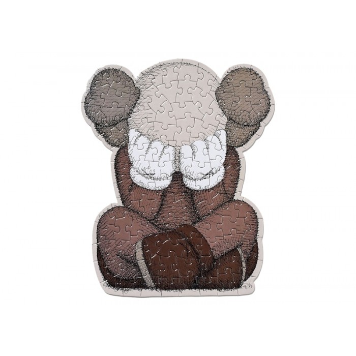 KAWS released a series of merchandise that included puzzles, pins, notebooks, postcards, and more for his Tokyo First Exhibit, his first ever large scale exhibition in Japan. The KAWS Tokyo First Separated Puzzle features an image of a brown KAWS Companion figure sitting down in the same separated pose as the KAWS Separated vinyl figure. With only 100 pieces this puzzle is an easy challenge for people of all ages.The KAWS Tokyo First Separated Puzzle released July 16, 2021.